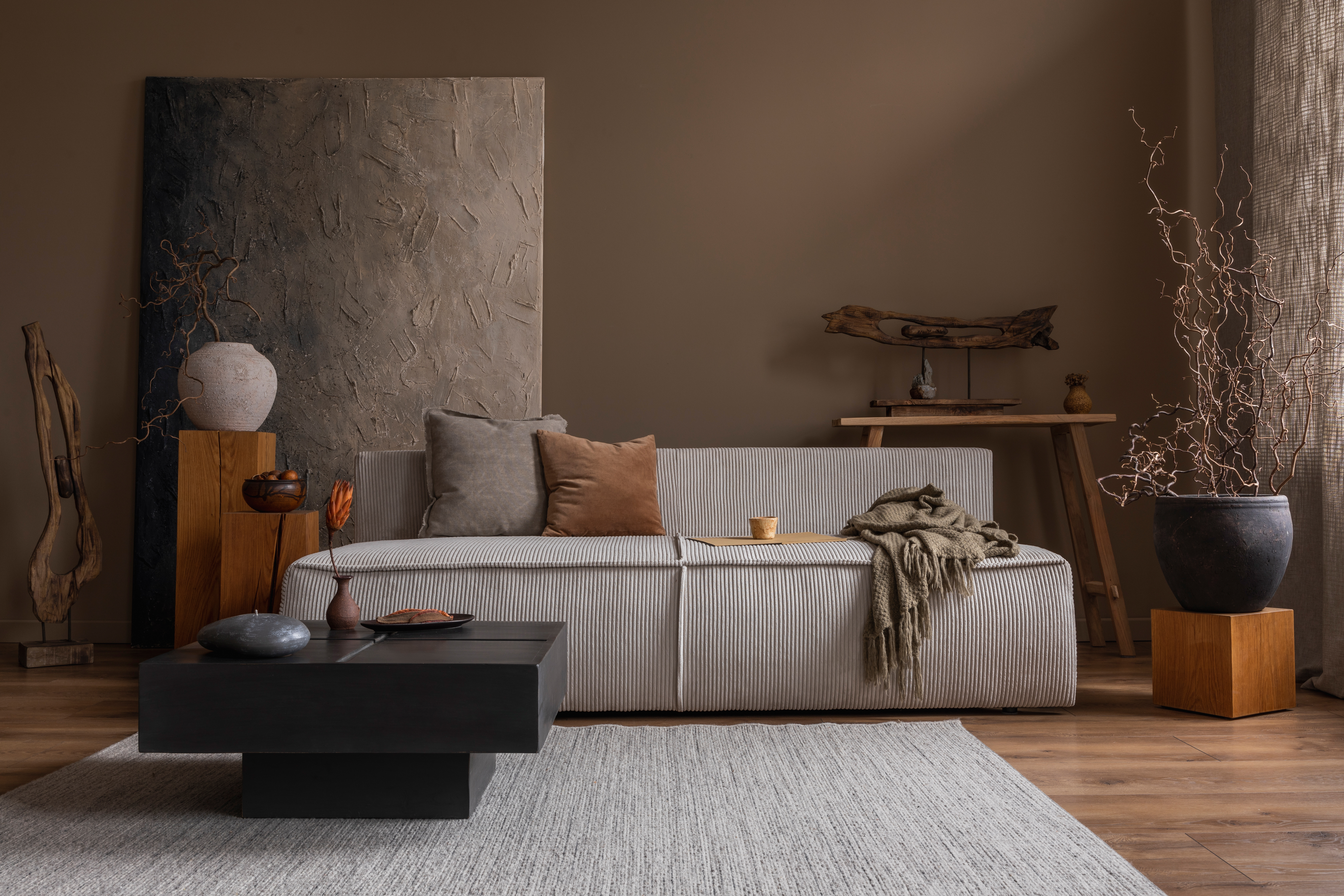 Valorisant l’imperfection et l’authenticité, en opposition totale avec la perfection rigide prônée par le modernisme, la tendance Wabi-Sabi affectionne les meubles et objets artisanaux qui ont traversé le temps. Les pièces vintages et la récup sont alors idéales pour créer une ambiance où l’irrégularité prime. Dans les tissus aussi, les tapis et les coussins aux matériaux naturels et au style authentique, ajoutent cette touche chaleureuse et humaine qui fait l’essence même du Wabi-Sabi.