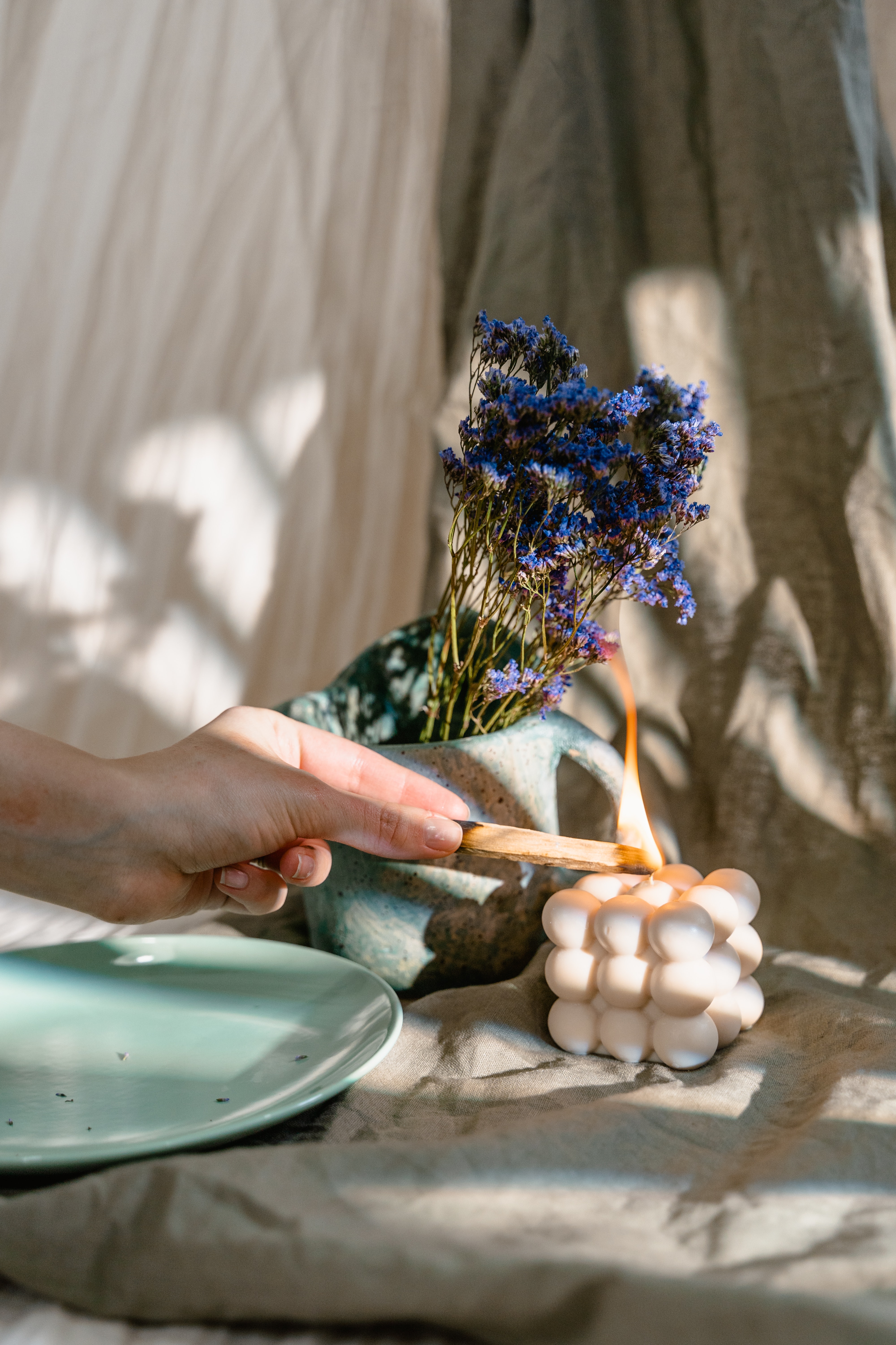 Plus classiques, il semble que les guirlandes lumineuses ne nous lasseront jamais. Enroulées autour du cadre du lit, posées sur un miroir, sous une cloche ou suspendues à une branche, elles assurent une lumière tamisée et une ambiance chaleureuse à la tombée de la nuit. Sans doute parce qu’elles nous rendent un brin nostalgique ; souvenir de notre chambre d’ado ou d’une belle soirée d’été en terrasse ; les guirlandes lumineuses ont le don de donner une toute nouvelle dimension à un espace et de réchauffer nos cœurs. En plus, on en trouve partout à petit budget !