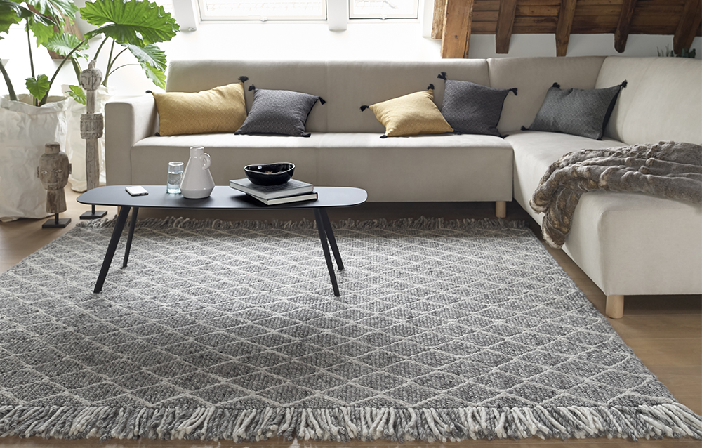 Première étape ? Choisir un modèle adapté à votre intérieur ! L’erreur est vite commise : à vue d’œil, en magasin ou sur internet, on pense que le tapis sera suffisamment grand, et une fois à la maison, celui-ci semble complètement perdu dans la pièce. Prenez le temps de vérifier les mesures ! Un tapis trop petit pourrait complètement déséquilibrer votre décoration. Pour ne pas regretter votre achat, prenez pour point de repère la taille de votre canapé. Dans l’idéal, optez pour un tapis légèrement plus large que celui-ci pour qu’il dépasse de 25 à 50 cm de chaque côté de l’assise et vienne délimiter l’espace.