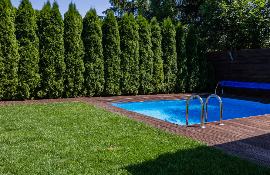 Les abords d’une piscine sont propices à la détente. Créez des coins ombragés pour que chacun profite de la piscine tout au long de la journée. Parasols, voiles d’ombrages, plantes hautes (bananier, palmier…) ou encore tonnelle seront les bienvenus. Disposez chacun de ces éléments astucieusement en fonction de l’exposition de votre jardin au soleil. Notre conseil : laissez aussi quelques coins de soleil pour ceux appréciant la bronzette.