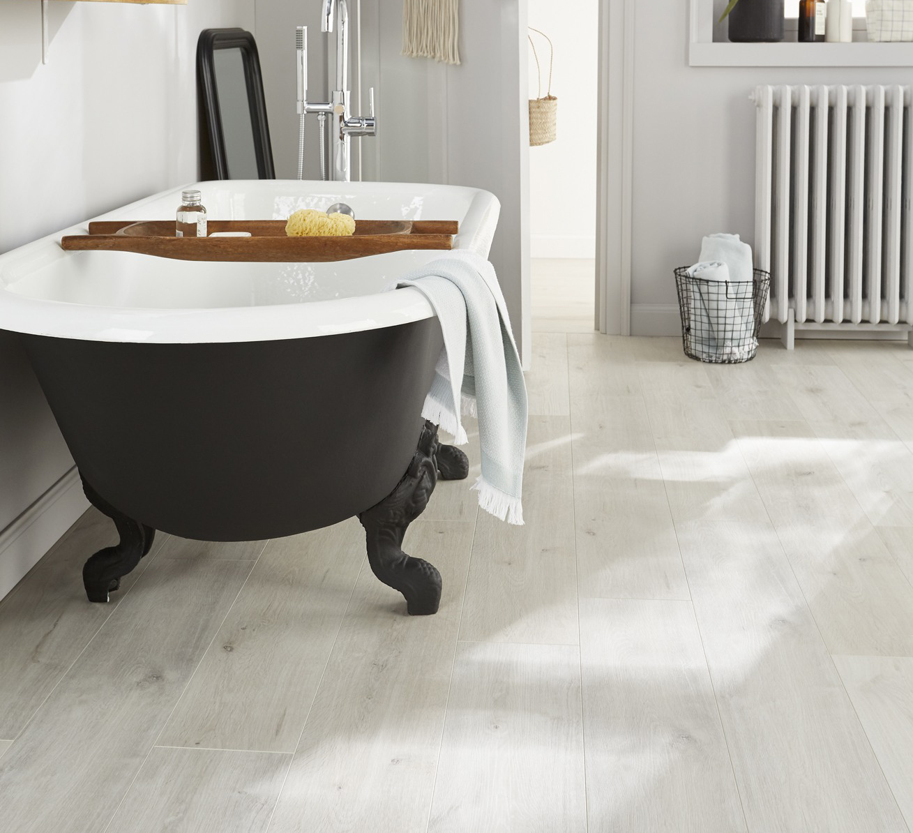 Salle de bain, pièces d'eau, WC, cuisine... Certaines pièces nécessitent des sols résistants à l'eau. Il y a le carrelage, bien sûr, toujours une bonne idée dans les pièces humides, mais aussi le parquet, le stratifié, le vinyle, ou encore le sol minéral composite.