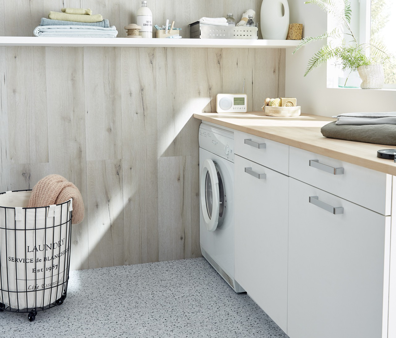 La gamme EASYLIFE HYDRO habille aussi bien la cuisine que la salle de bain, avec une palette aspect chêne à petit prix.