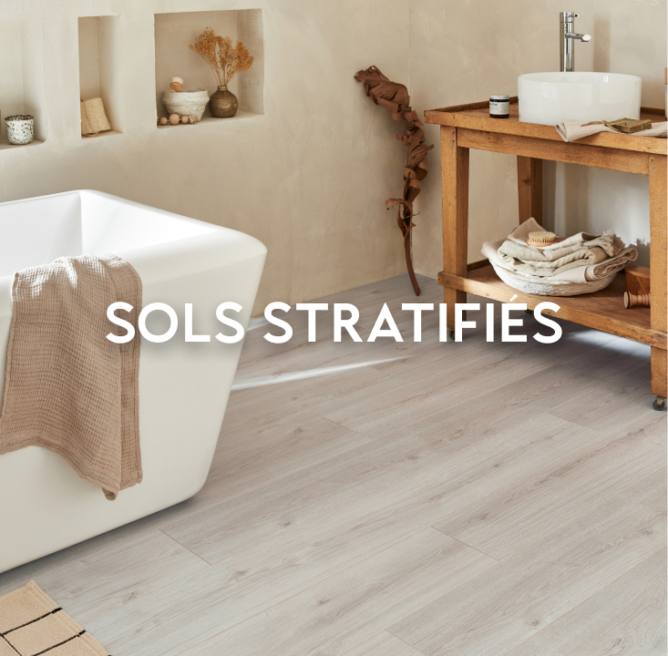 Nos sols stratifiés imitent les plus belles matières telles que le bois, la pierre ou le béton, tout en offrant une facilité d'entretien inégalée. Profitez des soldes ou de nos promotions durant l’année pour investir dans des sols qui apporteront une bonne dose d’élégance à votre espace tout en simplifiant votre quotidien. Parcourez notre large sélection de produits et trouvez le sol stratifié idéal pour redéfinir l'atmosphère de votre salon, chambre, bureau, ou couloir. Trouvez dès à présent votre sol stratifié pas cher !